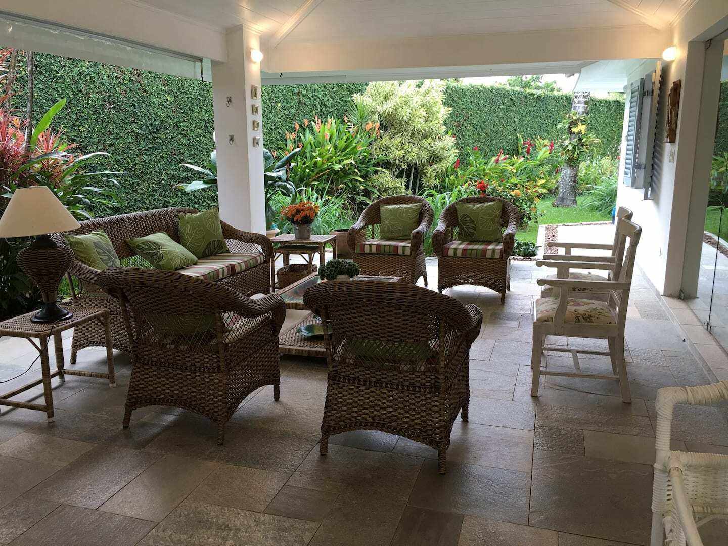 A casa é o verdadeiro paraíso para quem gosta de praia, natureza e só quer relaxar. Com 4 quartos e 7 banheiros, a casa acomoda até 11 pessoas. Ela tem piscina com jacuzzi e está localizada perto de praias, local para mergulho, quadra de tênis, futebol e ainda dá pra ir pescar no píer.