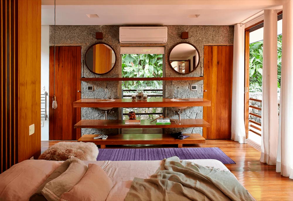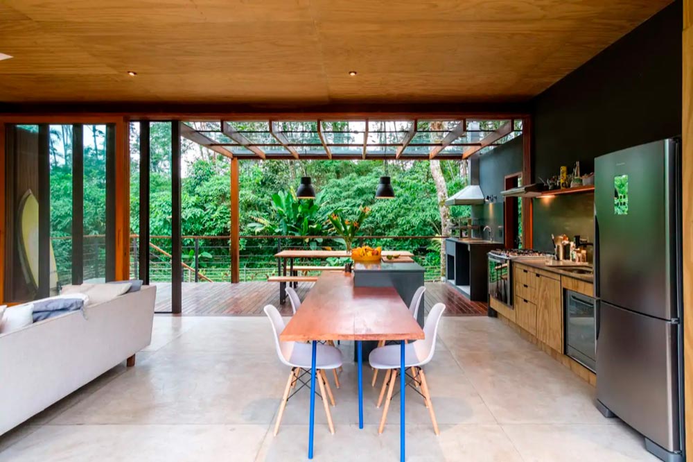 Essa casa super moderna está localizada em um condomínio fechado e tranquilo em Ubatuba. Ele fica um pouco longe da praia, mas aí que está a graça: o lugar é muito silencioso, rodeado de natureza e todo baseado na sustentabilidade. Ambientes amplos, arejados, com muita luz natural e integrados com a natureza. Não tinha como não entrar na nossa lista de casas incríveis no Airbnb nas praias de SP.