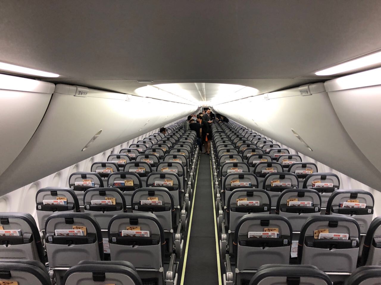 A bordo do 737 MAX 8, os Clientes continuam contando com toda comodidade em produtos e serviços da GOL durante suas viagens. A cabine Sky Interior, já presente na frota atual da companhia, inclui sistema de iluminação de LED, bagageiros novos e maiores. As poltronas em couro ecológico da Recaro, mais ergonômicas e leves, garantem maior conforto a bordo e eficiência operacional. Além disso, a aeronave também será equipada com antena que permite conexão à internet durante o voo, e também dará acesso gratuito à plataforma de entretenimento de bordo, que inclui filmes e TV ao vivo.